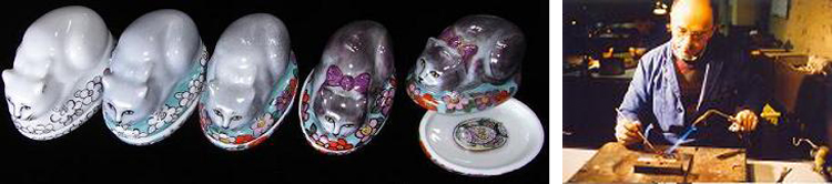 ![]() 絵付けの流れ ・ 金具を取り付けている風景 |